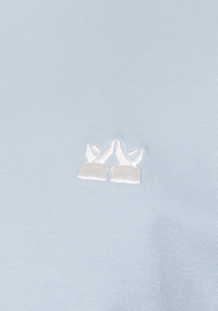 Aufgestickte Krone auf der linken Brust und Aufdruck auf der Rückseite.